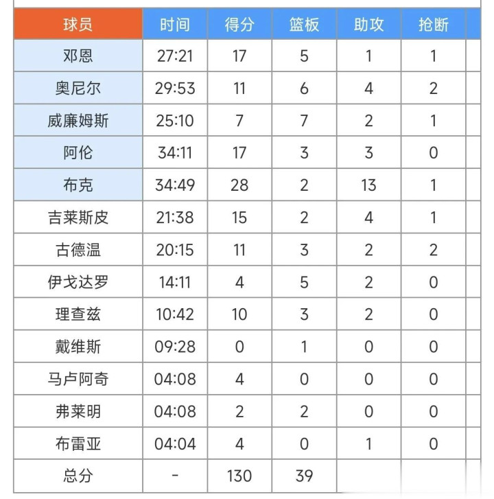 布克今天表现非常出色,拿出了当领袖的风范,得分靠谱,组织方面也连续送出助攻,上拿到最高的28分,还有最高的13个助攻。