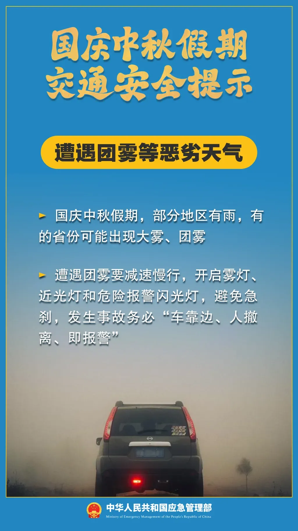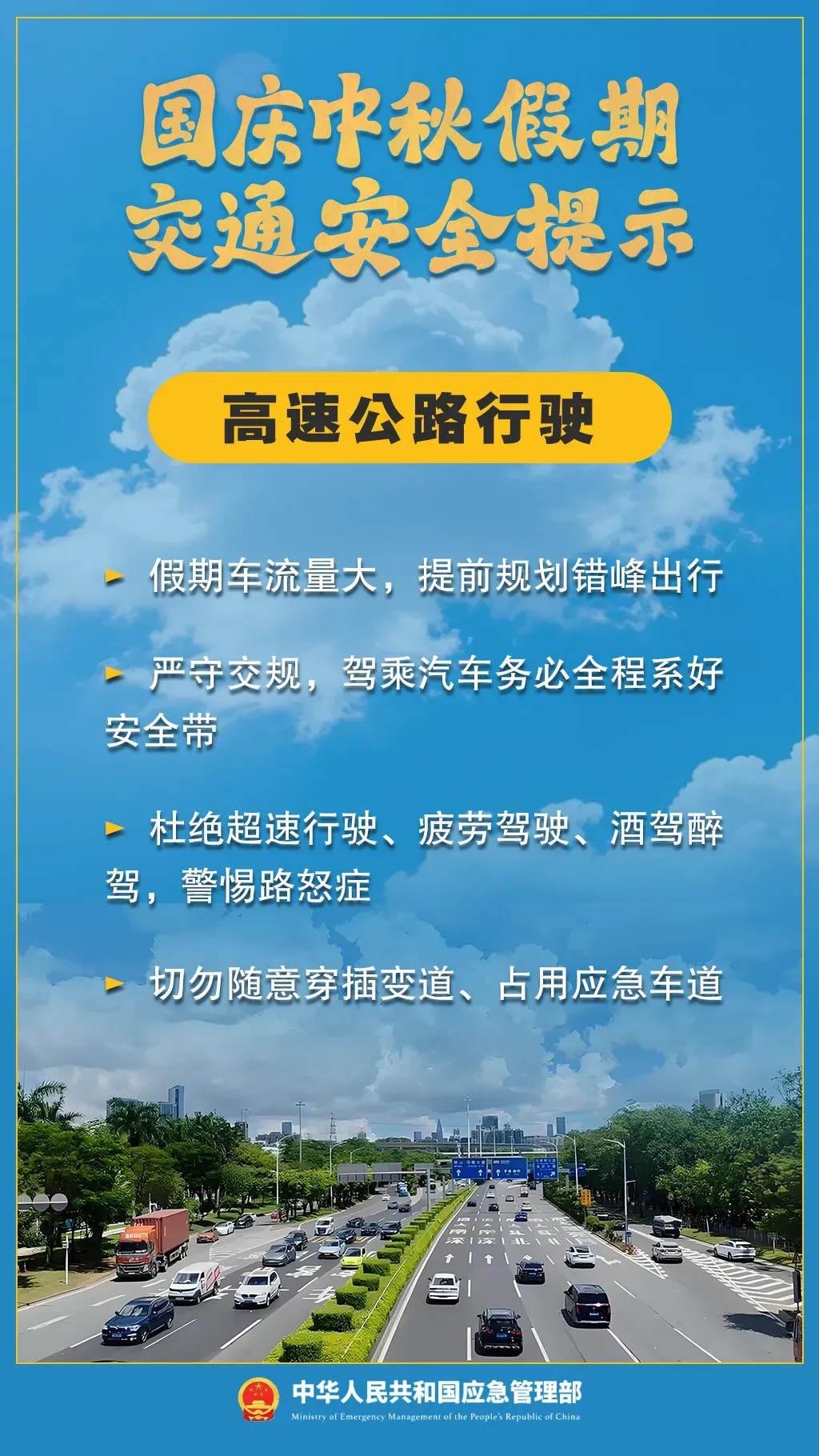 公安部交管局提示广大驾驶人和节日出行群众,返程要提前了解沿途天气和路况,合理规划返程时间、路线,尽量避免安排不熟悉车况、路况的“新手”驾驶人长距离驾车返程。雨天行车,要注意减速慢行,保持安全车距,切勿急打方向、急踩刹车。节假日亲友聚会增多,牢记“开车不喝酒、喝酒不开车”。